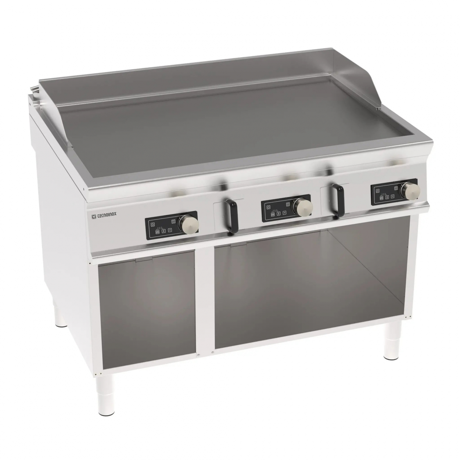 Gratar electric cu placa neteda, pe suport neutru deschis, panou de control electronic, structura inox AISI304 cu grosime de 2 mm a blatului superior ce are protectie la apa IPX4, termostat de siguranta, temperatura de lucru 60÷270 °C, dimensiuni placa de lucru 1130x690 mm, rebord la perete si protectii laterale inalte detasabile, picioare reglabile in inaltime.
