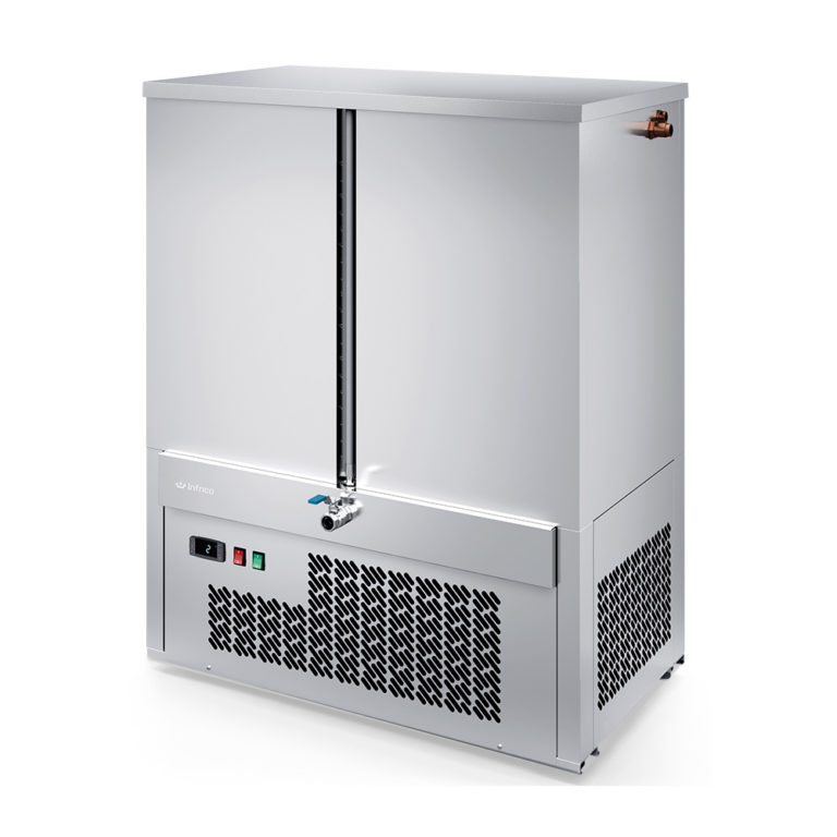 Racitor de apa pentru coferatii si patiserii, structura din inox AISI304, capac detasabil, volum intern 180 lt, temperatura de lucru +1ºC/+4ºC, racire prin ventilatie fortata cu aer, agent refrigerant ecologic R290, control electronic.