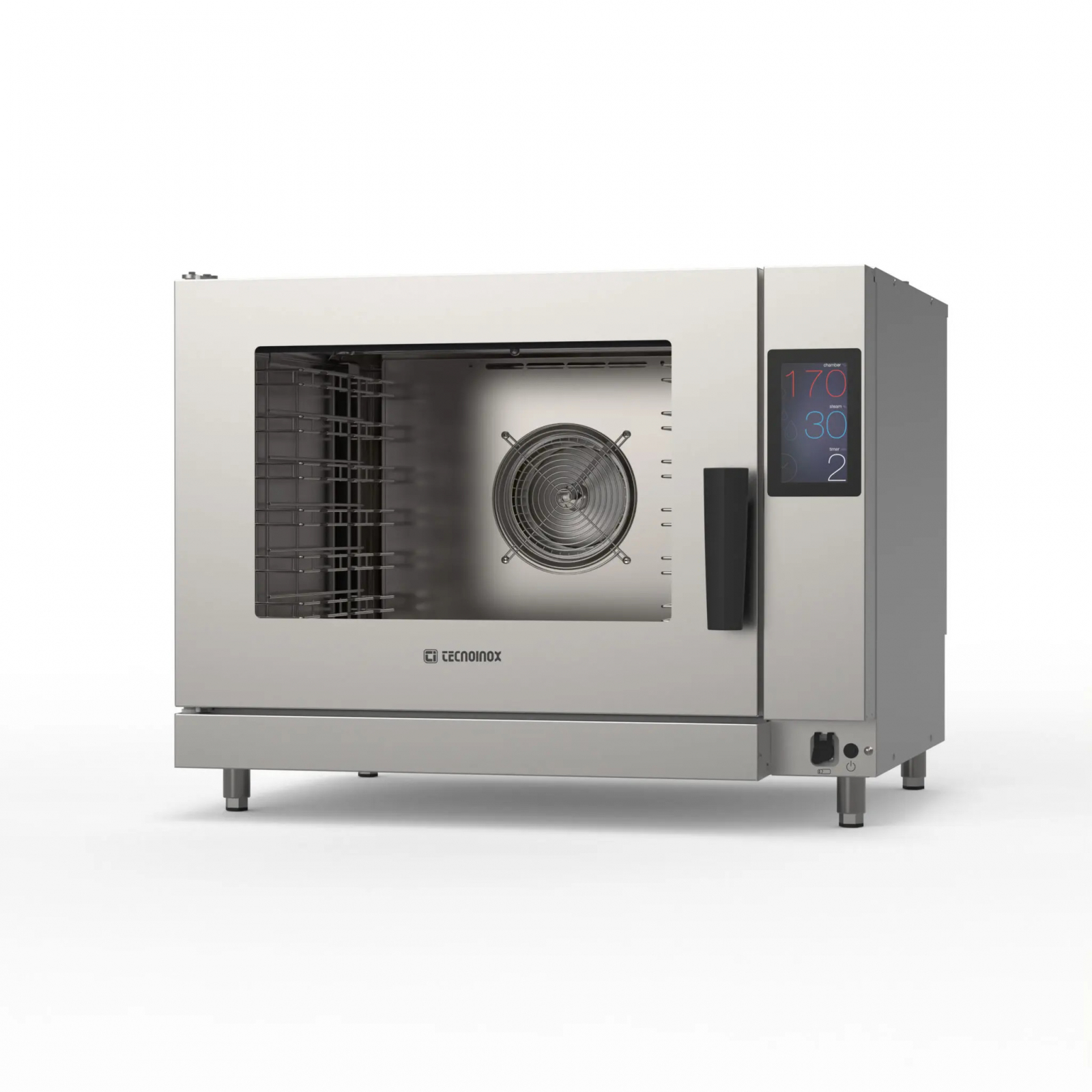 Cuptor combi 6 tavi GN1/1, structura din otel inoxidabil AISI304, 1 ventilator cu inverter si 4 viteze de lucru cu autorevers, usa din inox AISI304 alcatuita din 2 geamuri, usa cu iluminare LED in interior, maner anti alunecare si anti amprenta , display tactil capacitiv 7inch, 8 cicluri de gatit, 19 niveluri de umiditate, tepmeratura de lucru 50°C – 265°C, pana la 300 de programe de gatit, inclusiv cele incarcate si cele create de bucatar, tehnologie multi food pentru gatirea mai multor alimente simultan, auto curatare automata ce include 4 cicluri, platforma cloud pentru controlul cu usurinta a retetelor si cuptoarelor, HACCP si inregistrarea datelor de consum