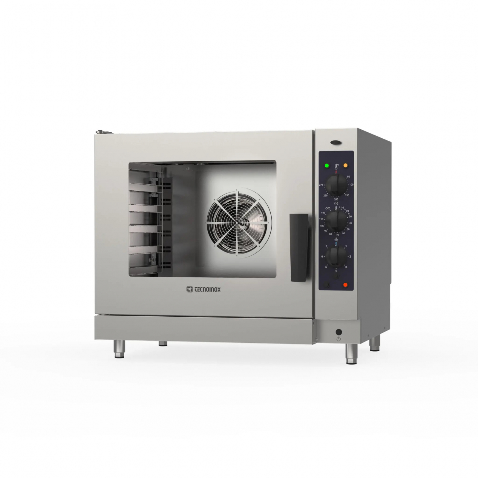Cuptor gaz combi cu abur direct, structura din otel inoxidabil, capacitate 6 tavi GN 1/1, panou de control electromecanic, iluminarea camerei de gatit este prin LED-uri in usa, camera de gatit din otel inoxidabil, usa etansa, maner anti-alunecare si anti-amprenta, ventilatoare profesionale cu functie de autoversare, ventil manual, picioare reglabile in inaltime.