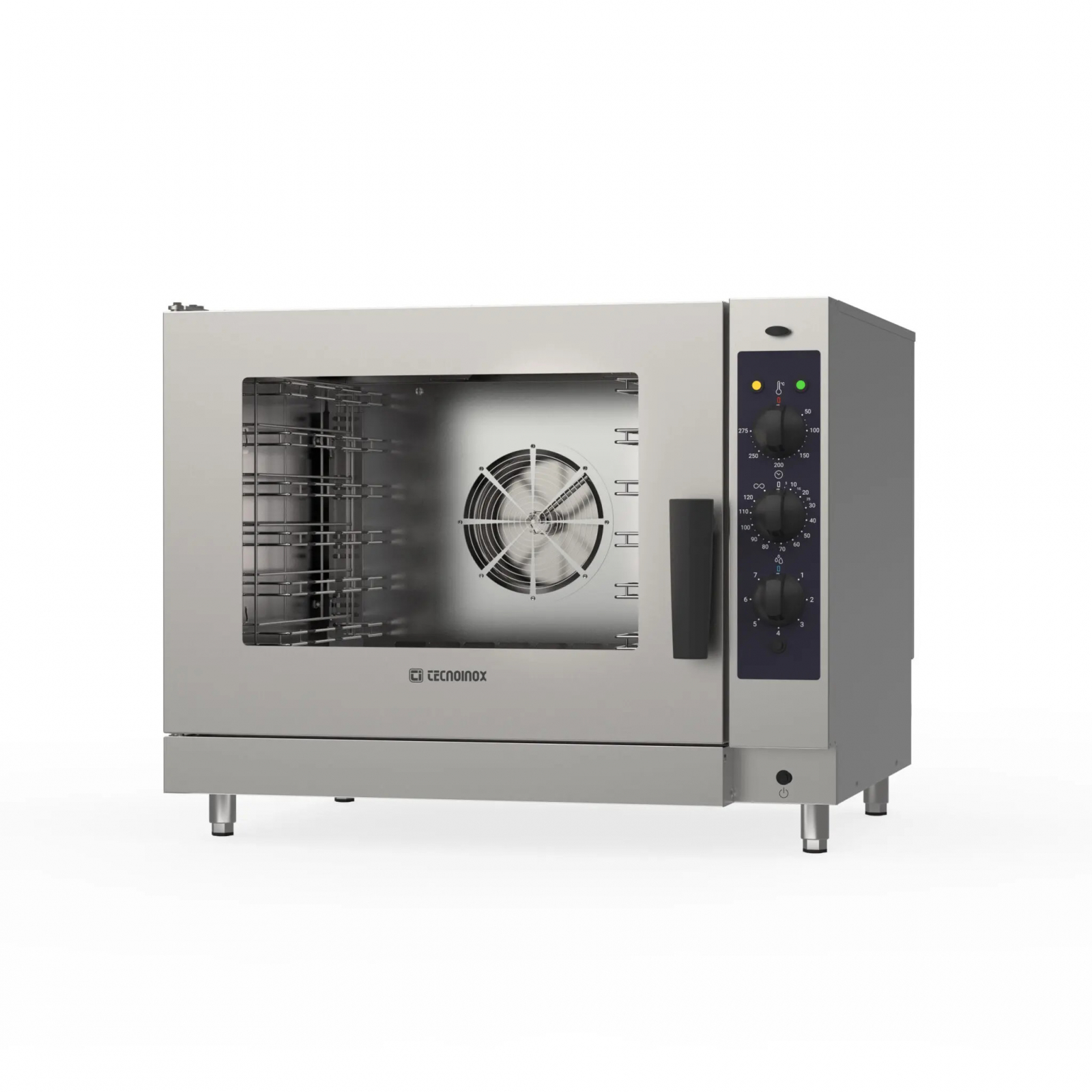 Cuptor combi gaz cu abur direct, structura din otel inoxidabil, capacitate 6 tavi GN1/1, panou de control electromecanic, usa etansa din otel inoxidabil, iluminare a camerei de gatit prin LED-uri integrate in usa, maner anti-alunecare si anti-amprenta, ventilatoare profesionale cu functia autoreverse, deschidere manuala a ventilatiei, dus extern optional, picioare reglabile in inaltime.