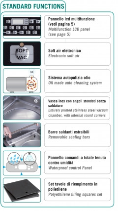 Masina de vidat profesionala cu clopot, structura din otel inoxidabil, interior din otel inoxidabil cu colturi rotunjite, panou de control etans rezistent la umiditate, sistem de autocuratare cu ulei, airsoft electronic, panou LCD multifunctional, pompa de vidare 60 m³h.
