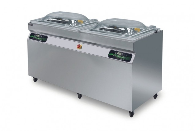Masina de vidat profesionala cu clopot, structura din otel inoxidabil, interior din otel inoxidabil cu colturi rotunjite, panou de control etans rezistent la umiditate, sistem de autocuratare cu ulei, airsoft electronic, panou LCD multifunctional, pompa de vidare 100 m³h.