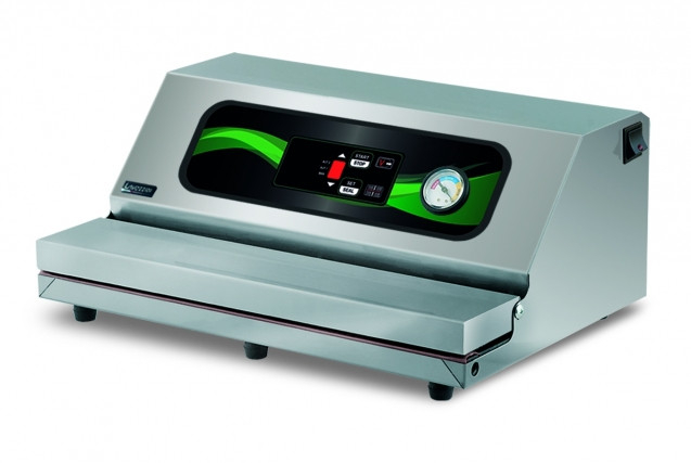 Masina de vidat automata, panou de control digital,  structura din otel inoxidabil. Doua moduri de functionare, realizare vidului in interiorul pungilor sau prin aspirarea in recipiente concepute pentru lichide/sosuri, structura foarte solida, panou de controll digital cu selectia de lucru manual/automat, interior cu colturi dreptunghiulare.