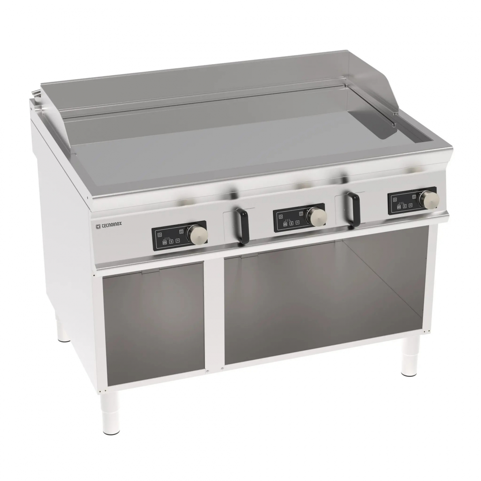 Gratar electric cromat, pe suport neutru deschis, panou de control electronic, structura inox AISI304 cu grosime de 2 mm a blatului superior ce are protectie la apa IPX4, termostat de siguranta, temperatura de lucru 60÷270 °C, dimensiuni placa de lucru 1130x690 mm, rebord la perete si protectii laterale inalte detasabile, picioare reglabile in inaltime.