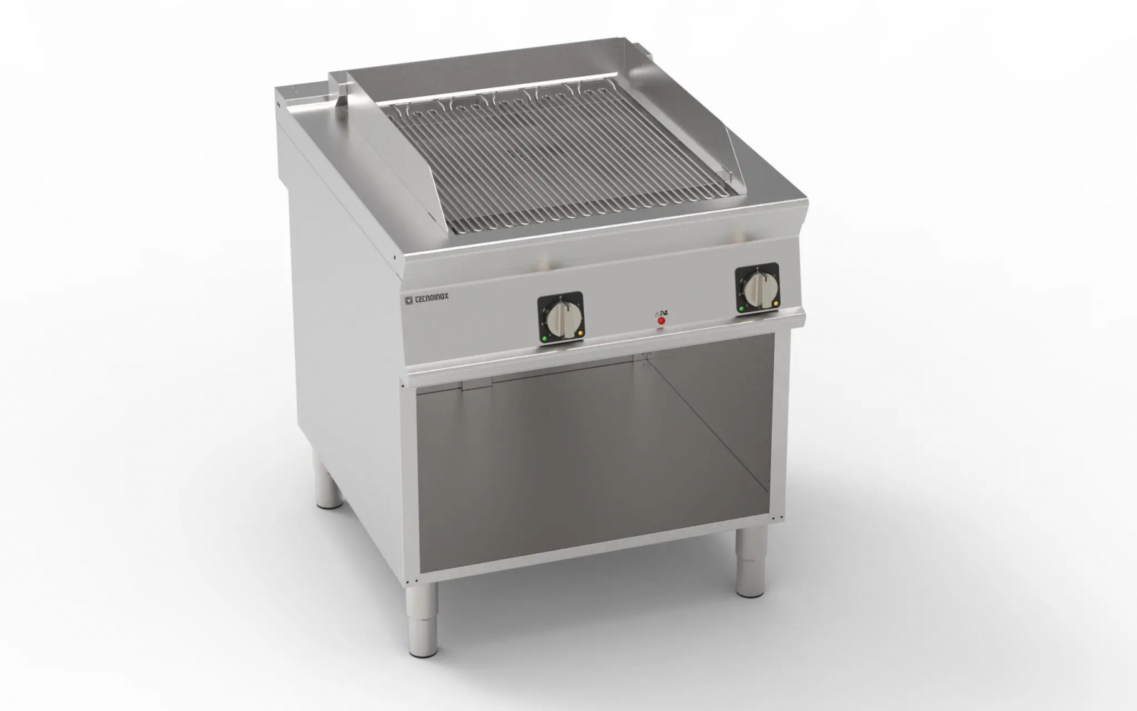 Gratar electric cu apa cu elemente de incalzire pe suport neutru deschis, 2 zone independente de gatit, structura din inox AISI 304, micro intrerupator de siguranta in cazul elementelor de incalzire ridicate, umplere automată cu apă cu supapă solenoidală, echipat cu un filtru din plasă de sârmă ce împiedică reziduurile de alimente mai mari să obtureze scurgerea și facilitează curățarea rezervorului, termostat de funcționare cu resetare automată care servește ca dispozitiv de siguranță a rezervorului gol, lumină roșie de pe panoul de comandă care indică rezervorul gol, lumină portocalie care indică faptul că elementele de încălzire se încălzesc, regulator de energie, componentele electrice, cum ar fi supapele solenoide și antreprenorii, sunt poziționate lângă panoul de control pentru a facilita întreținerea, picioare reglabile in inaltime.