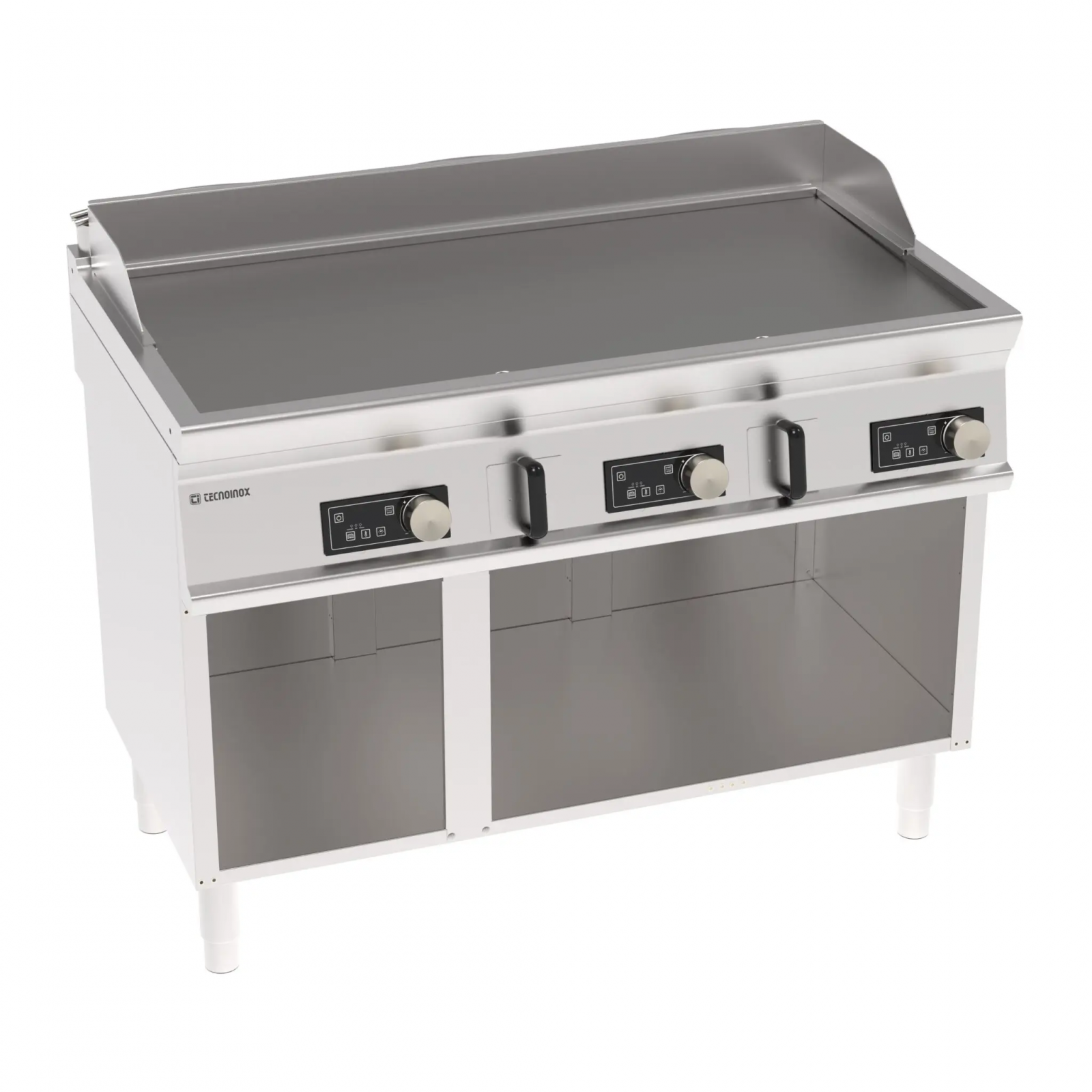 Gratar electric cu placa neteda, pe suport neutru deschis, panou de control electronic, structura inox AISI304 cu grosime de 2 mm a blatului superior ce are protectie la apa IPX4, termostat de siguranta, temperatura de lucru 60÷270 °C, dimensiuni placa de lucru 1130x560 mm, rebord la perete si protectii laterale inalte detasabile, picioare reglabile in inaltime.