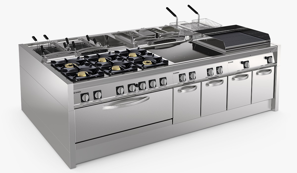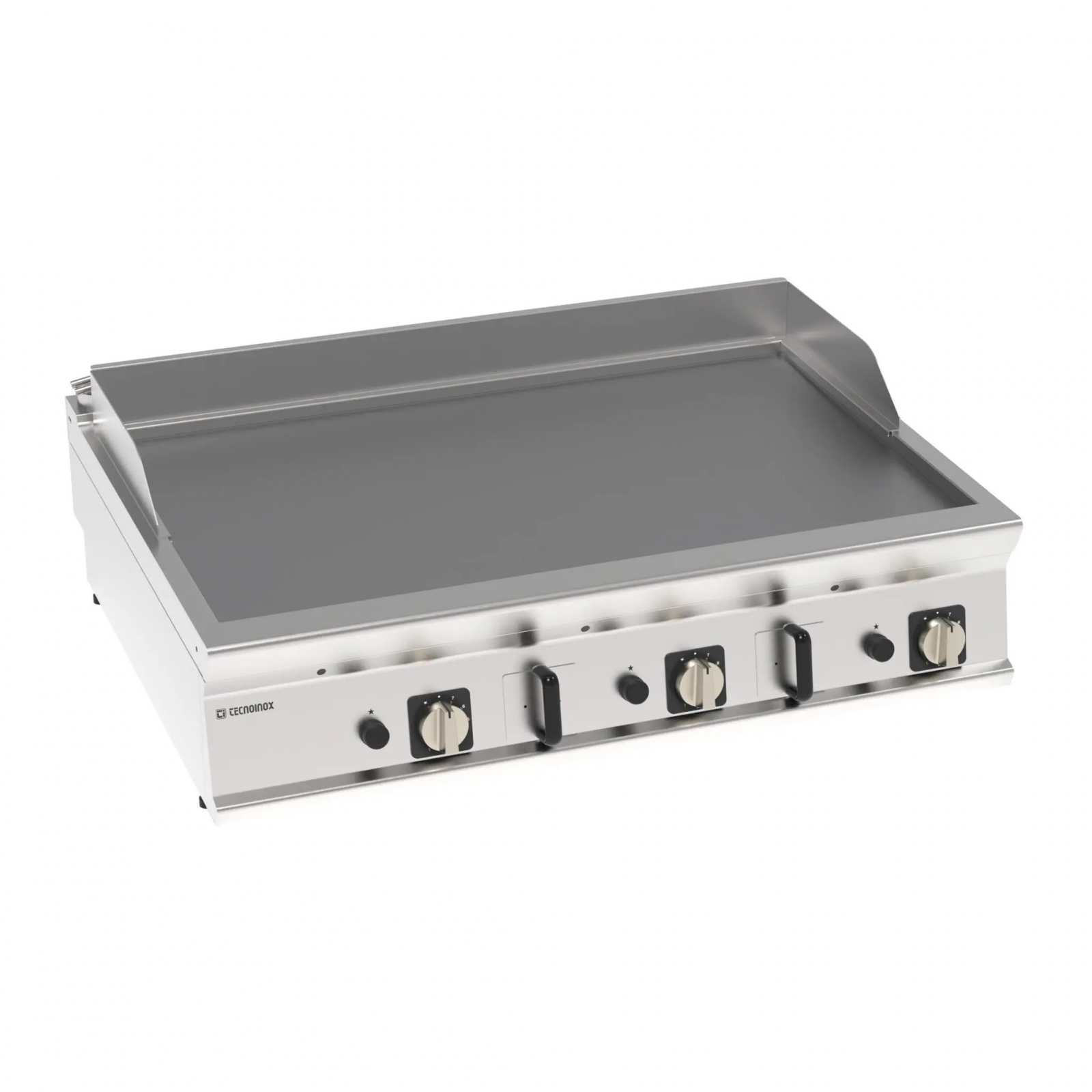 Gratar neted cromat gaz de banc, temperatura de lucru 60÷300°C, sertar colectare grasimi, structura inox AISI304, panou frontal detasabil, butoane foarte solide, 3 zone independente de lucru, dimensiuni placa de lucru 1130x690 mm, protectie perimetrala inalta detasabila inclusa, picioare reglabile in inaltime.
