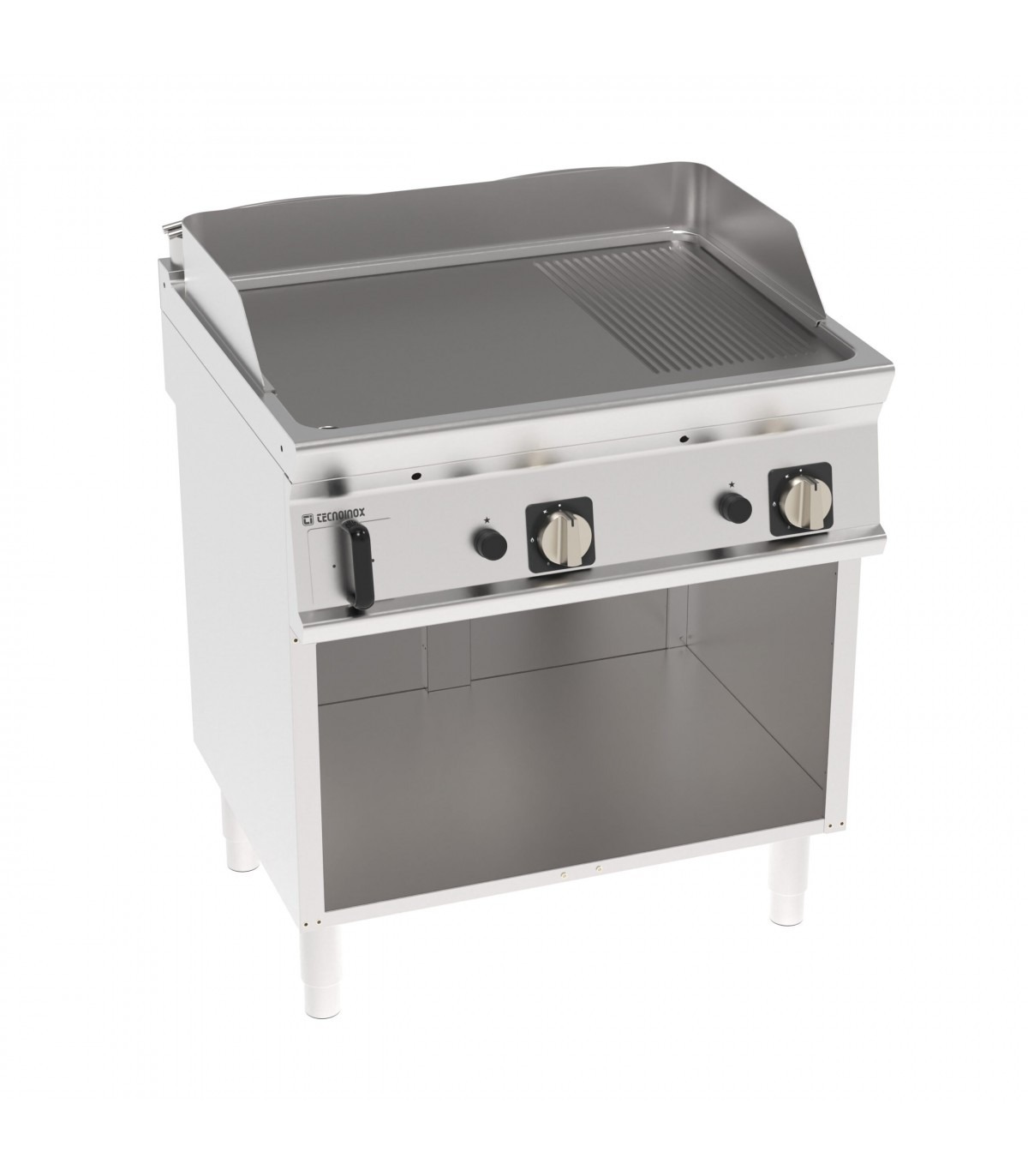Gratar cromat gaz cu placa 1/3 striata si 2/3 neteda, structura inox AISI304 cu grosime de 1,5mm a blatului superior ce are protectie la apa IPX4, suprafata de lucru cromata antiaderenta ce asigura durabilitate mare si curatare usoara, termostat de siguranta, temperatura de lucru 90÷280 °C, dimensiuni placa de lucru 748x564 mm, rebord la perete si protectii laterale inalte detasabile, greutate 115Kg, picioare reglabile in inaltime.