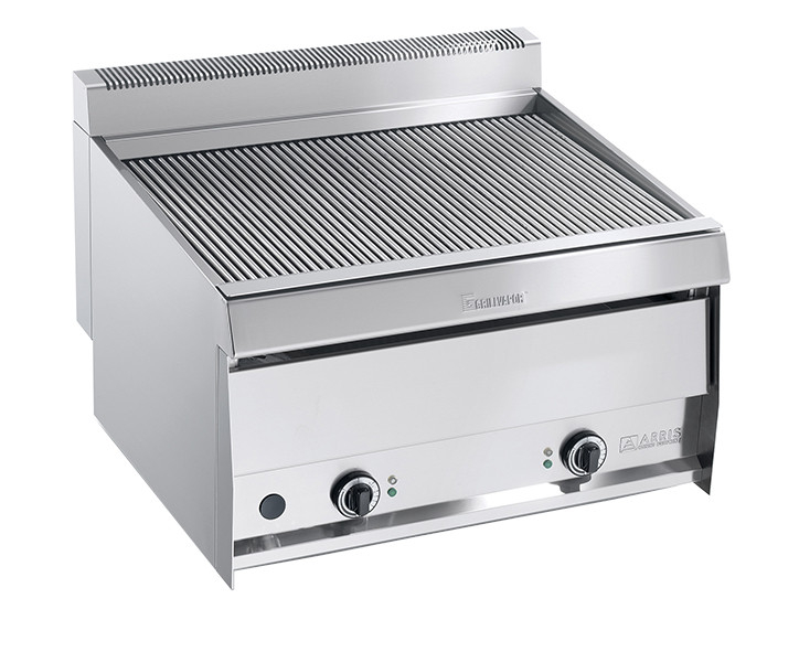Gratar electric model banc, structura din otel inoxidabil, 2 zone independente de gatit, zona de gatit cu temperatura reglabila, sertar cu colector de apa, umplere manuala cu apa, suprafata de gatit rabatabila, butoane ergonomice rezistente, dimensiun suprafata de gatit 760x530mm.