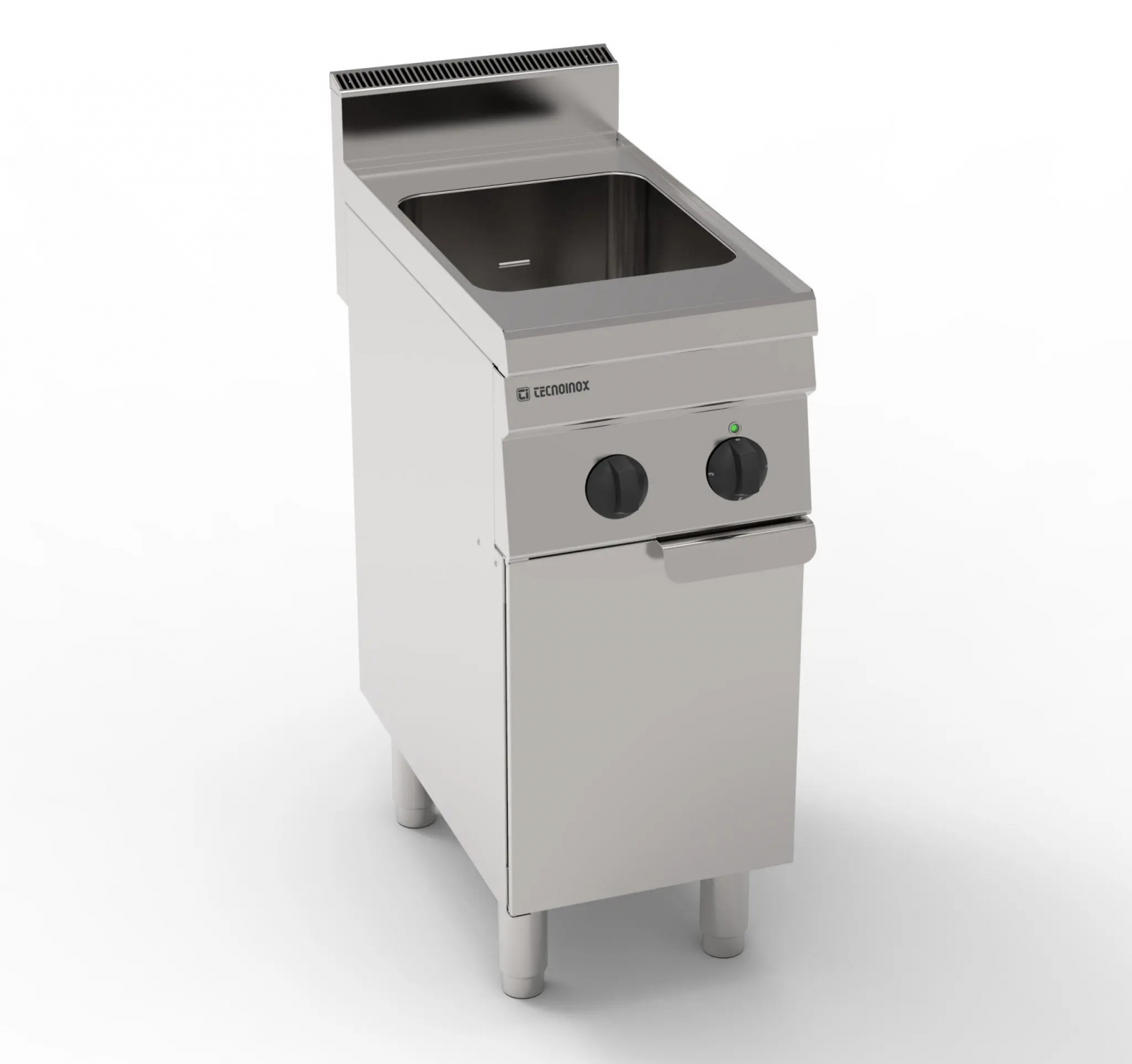 Masina de fiert paste electrica GN2/3 pe suport neutru inchis cu 1 usa, strucutura din inox AISI 304, capacitate 23Lt, mașinile de gătit paste mai sunt folosite si pentru a fierbe orezul, legumele, carnea și alte produse, panou de control și panouri laterale din oțel inoxidabil, sistem de cuplare modul cu îmbinări laterale exterioare, control de umplere cu apă în interiorul panoului de control cu injector de apă în interiorul rezervorului, încălzire prin elemente de încălzire blindate, regulator de energie, termostat de siguranta, greutate 38,5Kg, picioare reglabile in inaltime.
