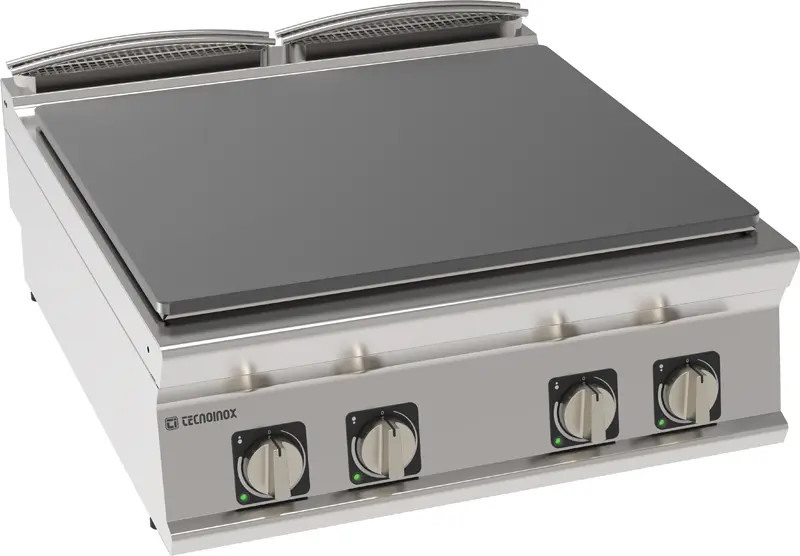 Masina de gatit electrica cu 1 plita patrata cu 4 zone de gatit, structura integrala din inox AISI304, putere plita 4x3,5kW, placa electrica din fonta, dimensiune plita 770x680,4mm, temperatura maxima 470°C, reglare termostatica, limitator de temperatură în interiorul plăcilor pentru a reduce consumul de energie,  comenzi de incalzire si control specifice fiecarei zone, indicatoare luminoase ce indica functionarea, termostat de siguranta, butoane foarte solide si rezistente in timp, greutate 95,5Kg, picioare reglabile in inaltime.