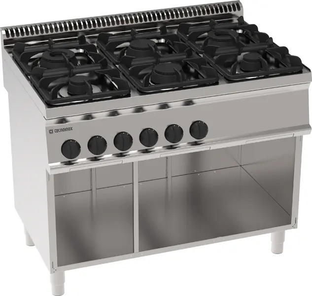 Masina de gatit cu 4 focuri pe suport neutru deschis, structura inox AISI304 cu blat superior de lucru grosime 2 mm, putere arzatoare 1x7,2-1x3,3-2x4,5kW, blat de lucru adânc cu colțuri rotunjite, aprinderea arzatorului principal prin arzator pilot cu termocupla de siguranta, robinet de gaz cu supapă, sistem de cuplare modul cu îmbinări laterale exterioare, greutate 55,2Kg, picioare reglabile in inaltime.