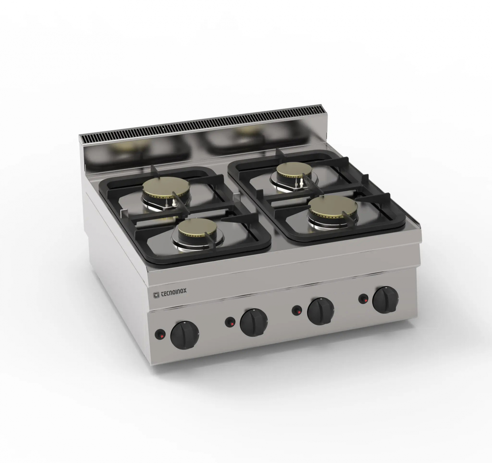 Masina de gatit gaz model banc cu 4 arzatoare, structura din inox AISI304, arzatoare emailate din fonta fixate pe blat cu un singur inel, distribuitor de flacara din alama, activarea arzatorului se face printr-un dispozitiv piezoelectric, termocupla de siguranta, robinet de gaz cu supapă, sistem de cuplare modul cu îmbinări laterale exterioare, putere arzator 2x3,3-2x5,2kW, compartiment tehnic pentru conectare usoara la reteaua de gaz, greutate 23,9Kg, picioare reglabile in inaltime.