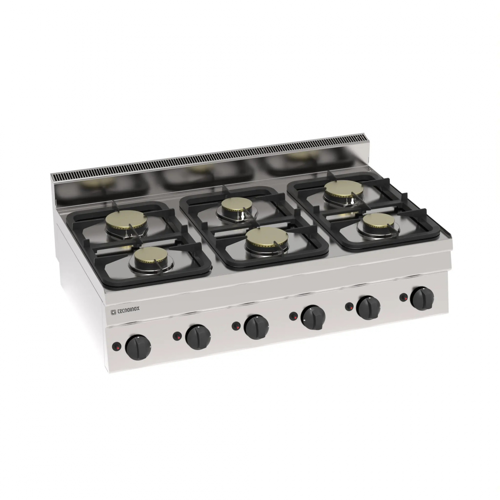Masina de gatit gaz model banc cu 6 arzatoare, structura din inox AISI304, arzatoare emailate din fonta fixate pe blat cu un singur inel, distribuitor de flacara din alama, activarea arzatorului se face printr-un dispozitiv piezoelectric, termocupla de siguranta, robinet de gaz cu supapă, sistem de cuplare modul cu îmbinări laterale exterioare, putere arzator 3x3,3-3x5,2kW, compartiment tehnic pentru conectare usoara la reteaua de gaz, greutate 36Kg, picioare reglabile in inaltime.