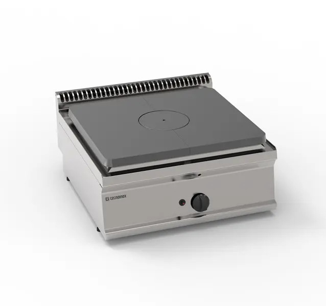 Plita pe gaz model banc, structura din inox AISI304, aprindere piezoelectrică, robinet de gaz cu supapă, arzator central din fonta cu arzator pilot si termocupla de siguranta, sistem de cuplare modul cu îmbinări laterale exterioare, putere arzator 1x9kW, dimensiune placa 620,8x550,8mm, greutate 66Kg, picioare reglabile in inaltime.