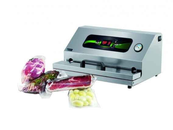 Masina profesionala de vidat automata, dotata cu pompa de ulei, panou de control digital, structura din otel inoxidabil, se pot vida mai multe pungi in acelasi timp. Doua moduri de functionare, realizare vidului in interiorul pungilor sau prin aspirarea in recipiente concepute pentru lichide/sosuri, structura foarte solida, panou de controll digital cu selectia de lucru manual/automat, interior cu colturi dreptunghiulare.