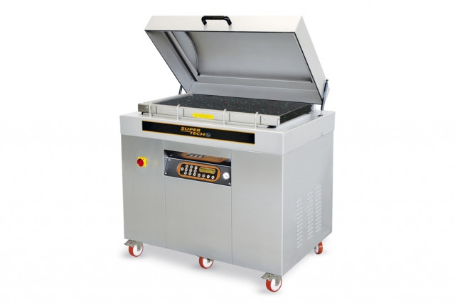 Masina de vidat profesionala, structura din otel inoxidabil, interior din otel inoxidabil cu colturi rotunjite, capac rabatabil cu maner, panou de control LCD multifuncional, sistem de autocuratare cu ulei, airsoft electronic, pompa de vidare 100 m³h.