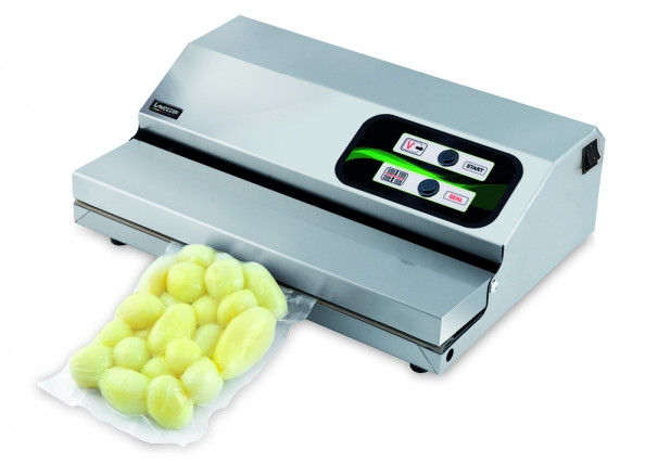 Masina de vidat semi-automata si analogica, structura din otel inoxidabil. Doua moduri de functionare, realizare vidului in interiorul pungilor sau prin aspirarea in recipiente concepute pentru lichide/sosuri, structura foarte solida, interior cu colturi dreptunghiulare.