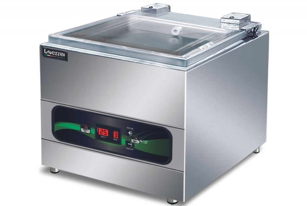 Masina de vidat profesionala, structura din otel inoxidabil, interior din otel inoxidabil cu colturi rotunjite, dispozitiv electronic, se poate vida in recipiente externe si chiar si in saci prin aspiratie externa, echipata cu camera de vid si bara de etansar, pompa de vidare 8 m³h.