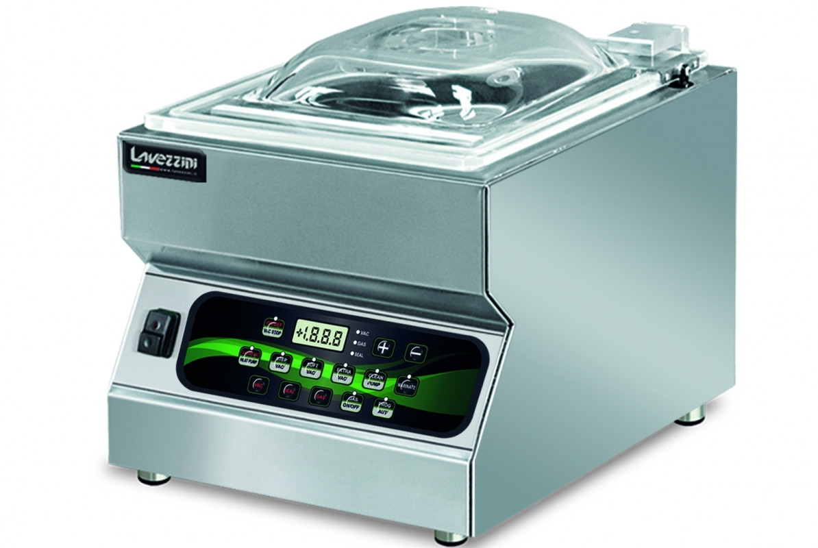 Masina de vidat profesionala, structura din otel inoxidabil, interior din otel inoxidabil cu colturi rotunjite, functia STEP VAC pentru ambalarea lichidelor si a 20 de programe de lucru disponibile pentru personalizare, conexiune pentru sistemul gastrovac, panou de control etans rezistent la umiditate, sistem de autocuratare cu ulei, airsoft electronic, panou LCD multifunctional, carcasa rabatabila la 90 de grade, pompa de vidare 8 m³h.