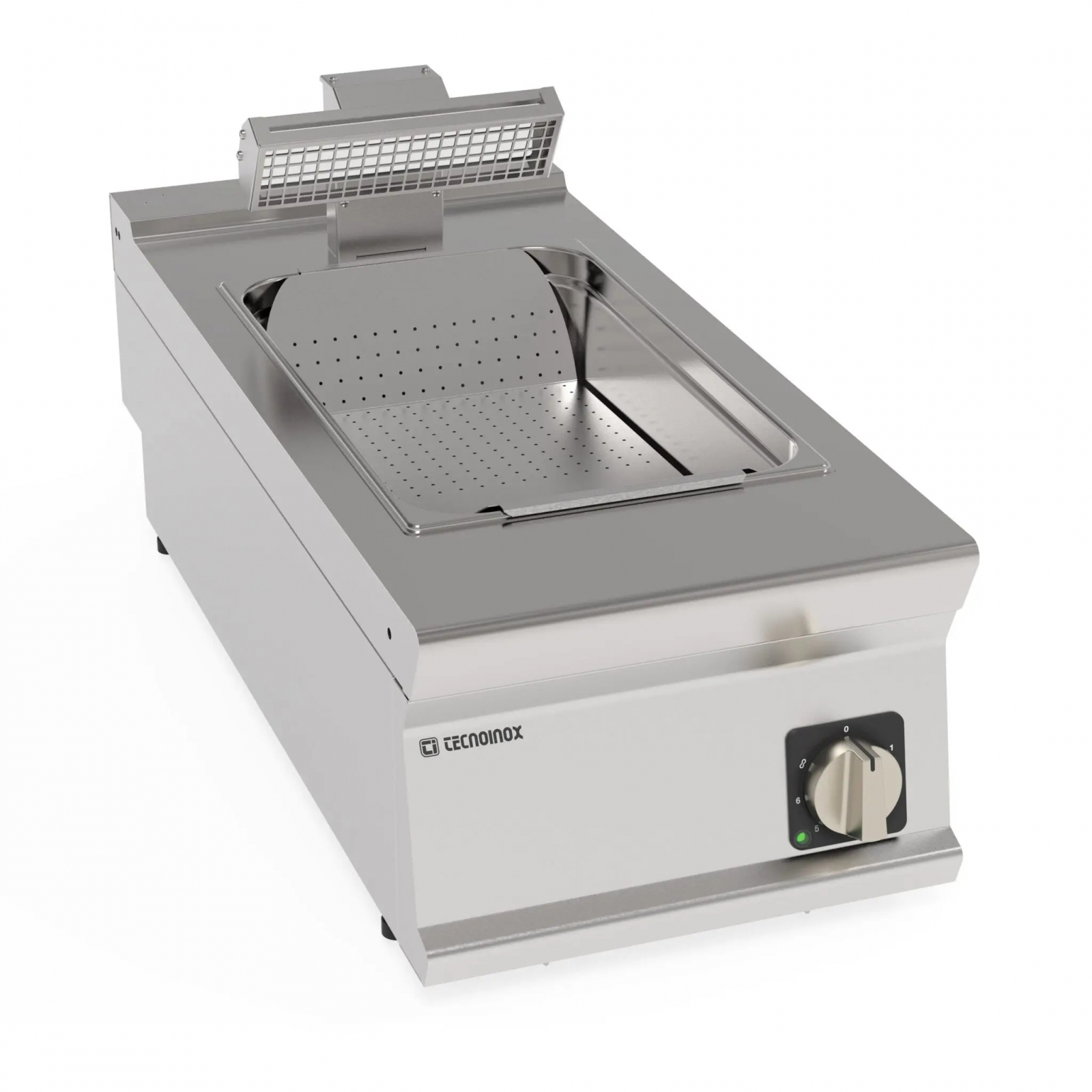 Element mentenitor la cald cartofi prafjiti, structura inox AISI 304, încălzire printr-o lampă cu element de încălzire cu infraroșu turnat ceramic, livrat cu recipient detasabil GN1/1 cu fund fals pentru scurgerea uleiului, regulator de energie , compartiment tehnic pentru conectare usoara la reteaua electrica, greutate 21,4Kg, picioare reglabile in inaltime.