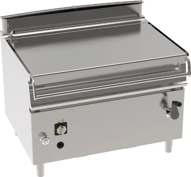 Tigaie basculanta gaz, capacitate 120 litri, structura inox AISI304 cu blat superior de lucru grosime 2 mm, cuva cu interiorul din inox AISI 304 pentru rezistenta foarte mare in timp, capac cu autobalansare si pereti dubli pentru izolare termica superioara, supapă cu termopilă, temperatura de lucru intre 100-300°C, termocupla de siguranta si flacara pilot, valva de siguranta gaz, admisie apa fixata pe spatele blatului de lucru, in afara rezervorului, umplere cu apă pe panoul frontal, butoane foarte solide si rezistente in timp, dimensiuni cuva 1009,8x560,4x200h, greutate 223Kg, picioare reglabile in inaltime.